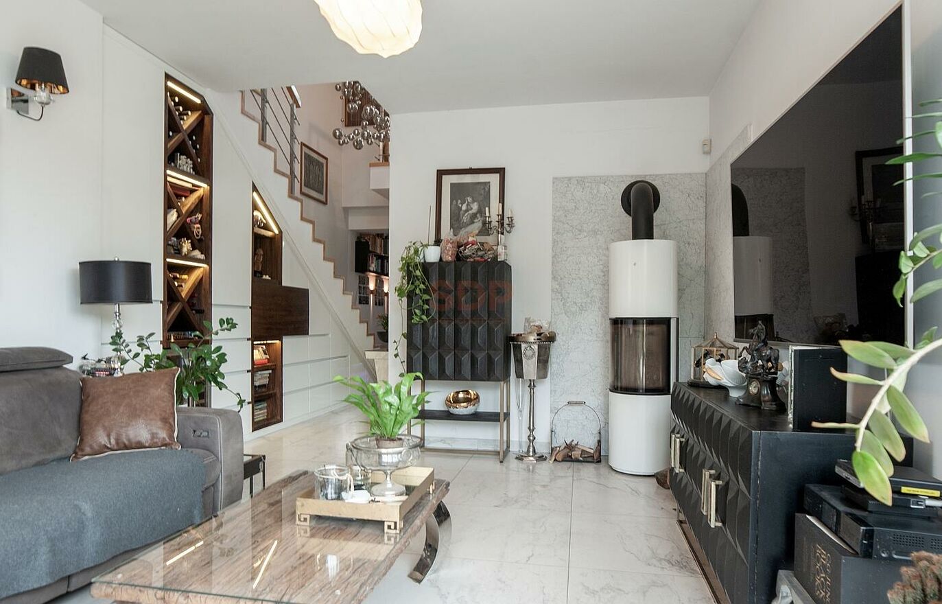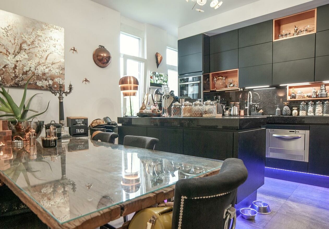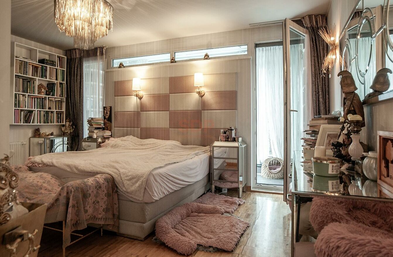 Pomieszczenia zabudowane wysokiej klasy meblami (zabudowy szaf, schowki, miejsca do przechowywania), wysokiej klasy zabudowa kuchni (niemiecka marka Nobilia) z półprofesjonalnym sprzętem.